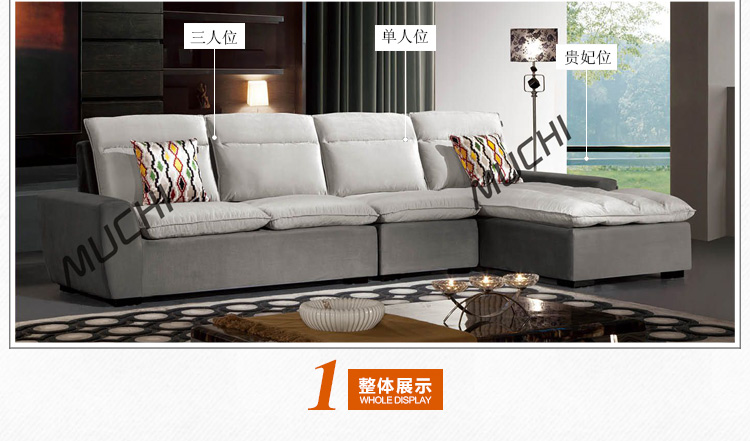 慕驰乳胶沙发布艺沙发现代简约客厅沙发转角贵妃布沙发可拆洗沙发组合S046A