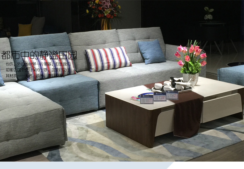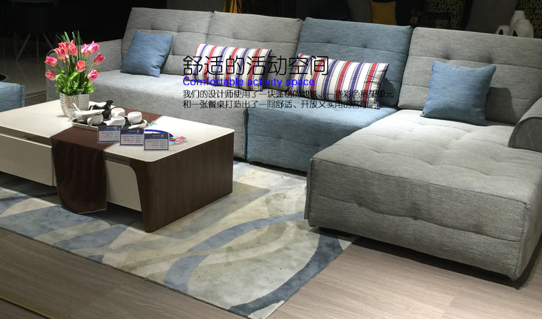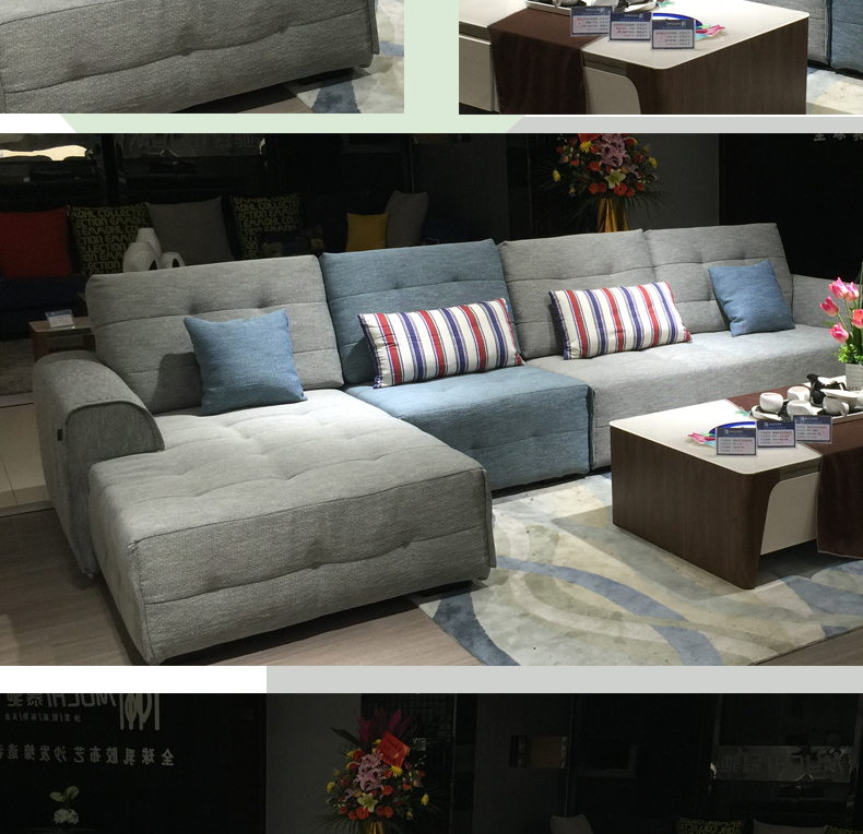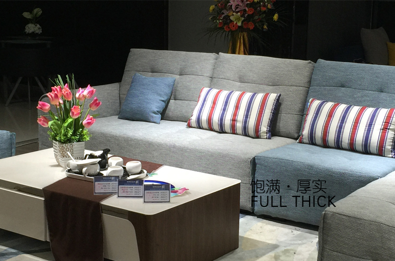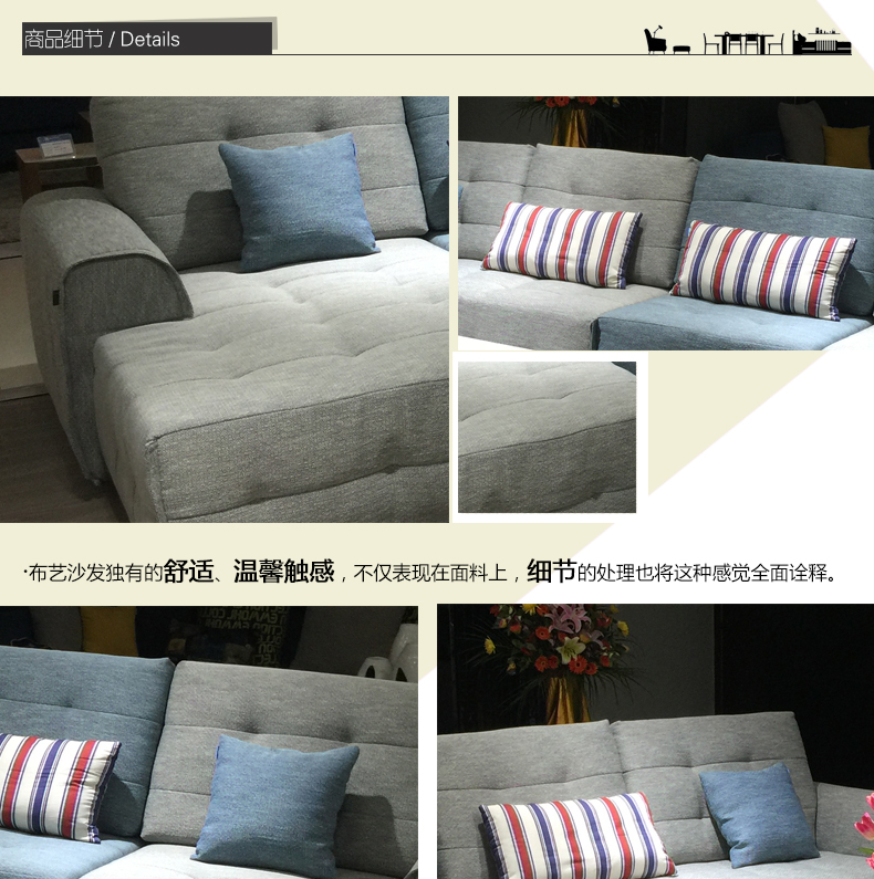 慕驰布艺沙发可拆洗组合 现代简约大小户型客厅L型转角皮布沙发S077