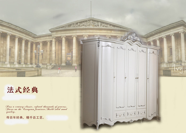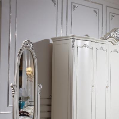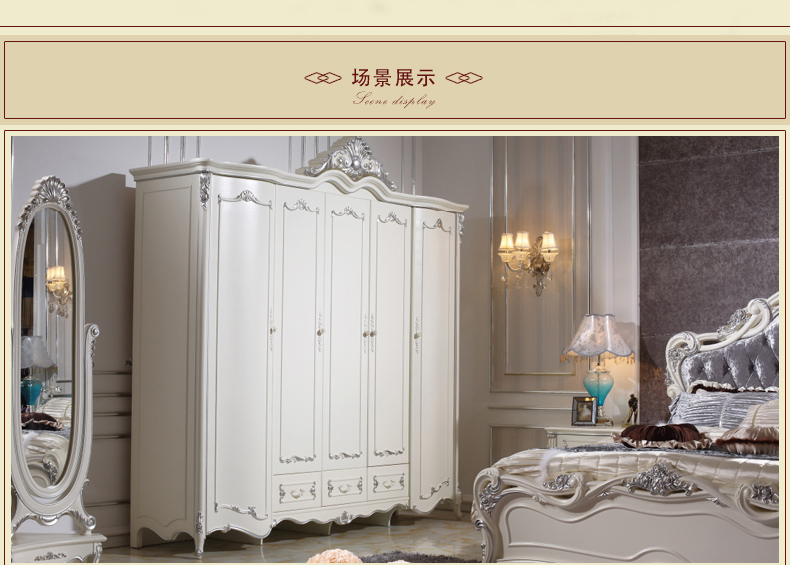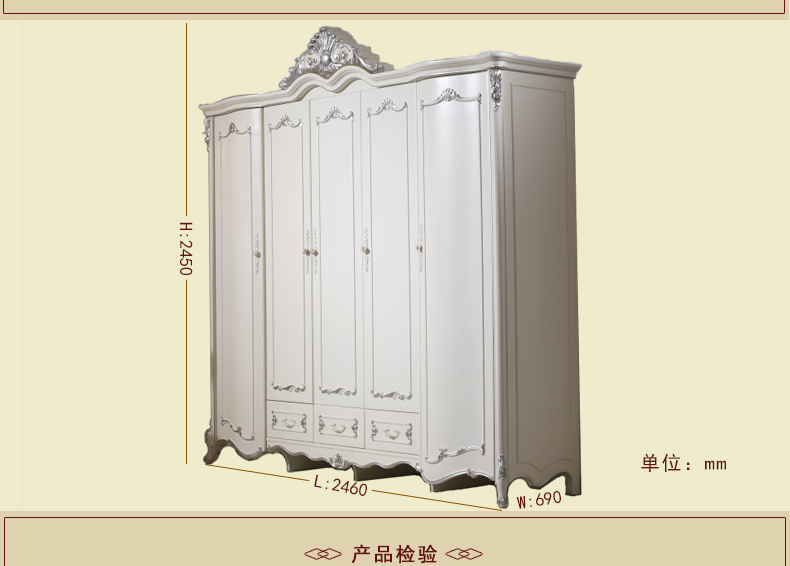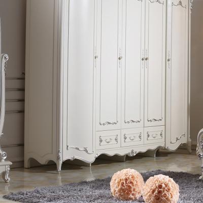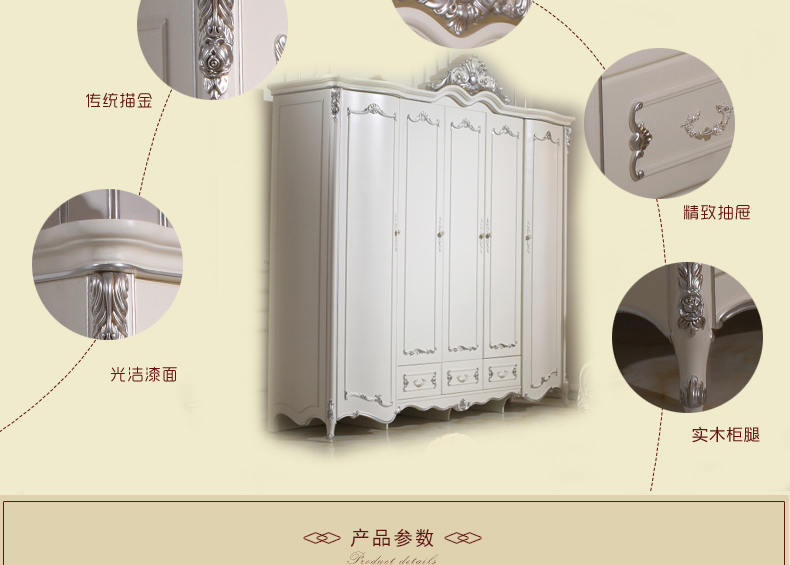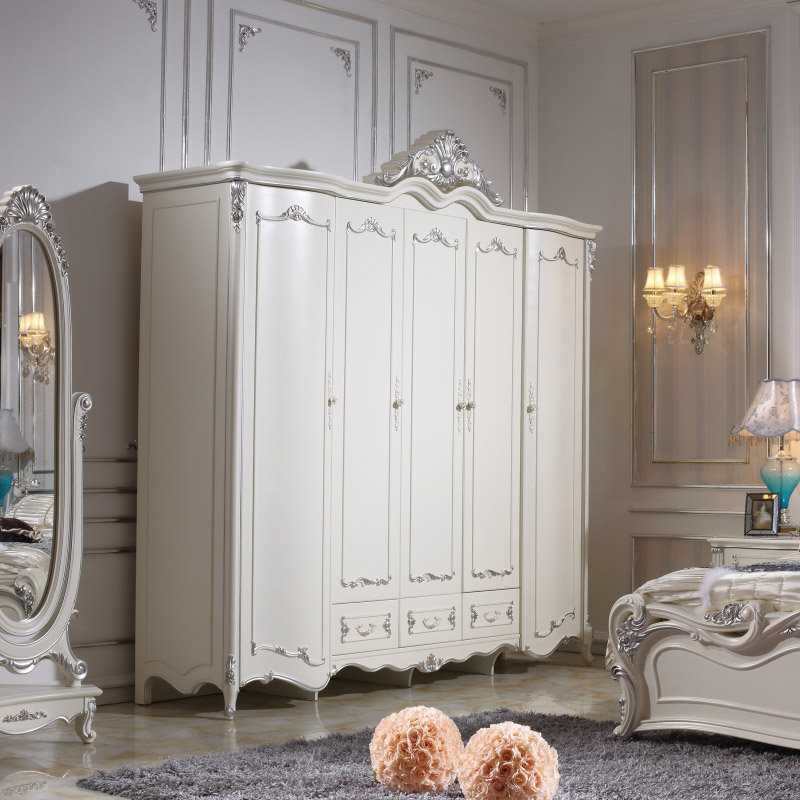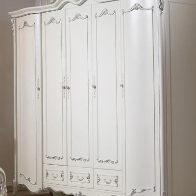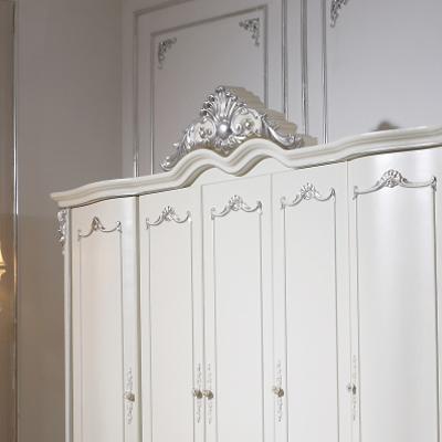 尚多家居 YG805B象牙白+银箔做旧法式雕花 卧室 5门带抽衣柜2.4米大衣橱
