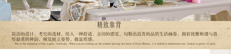 简欧风格家具特点讲究手工精细的裁切雕刻,轮廓和转折部分由对称而富有节奏感的曲线或曲面构成,结构简练,线条流畅,色彩富丽,艺术感强,给人的整体感觉是华贵优雅,十分庄重