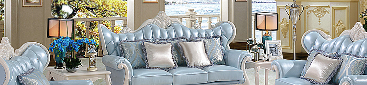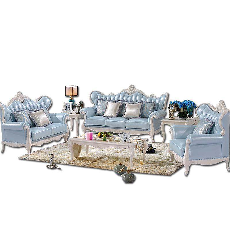 金亿宝古典雕花蓝色简欧风格客厅舒适1+2+3沙发组合802-1