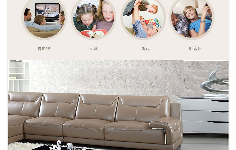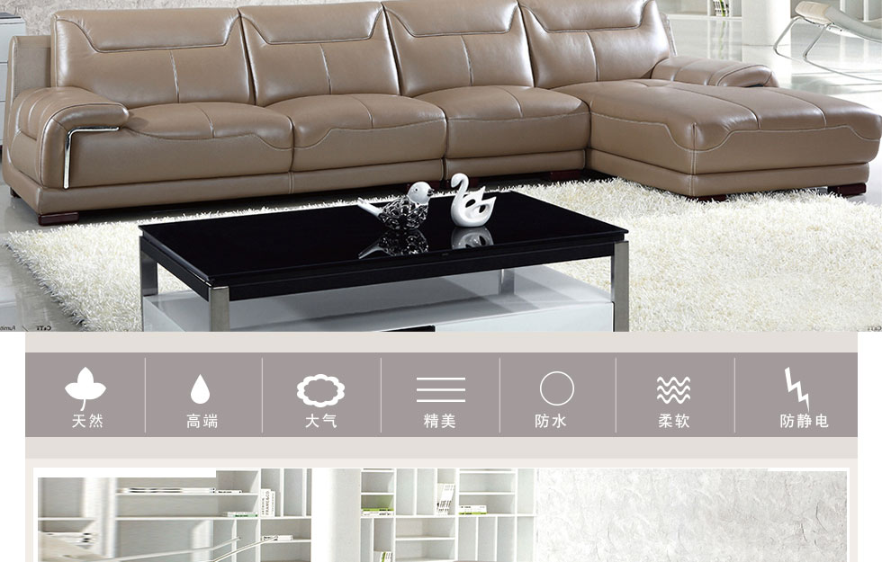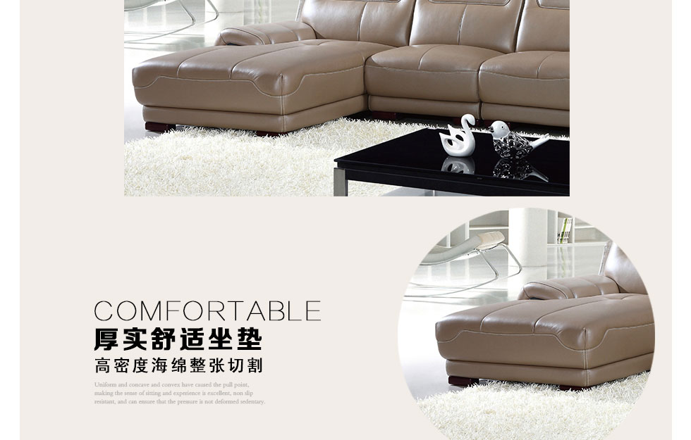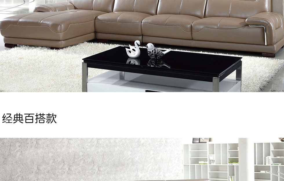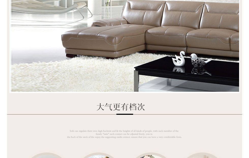 古缇 高档转角皮艺沙发组合 头层牛皮现代真皮沙发大小户型客厅家具QQ886