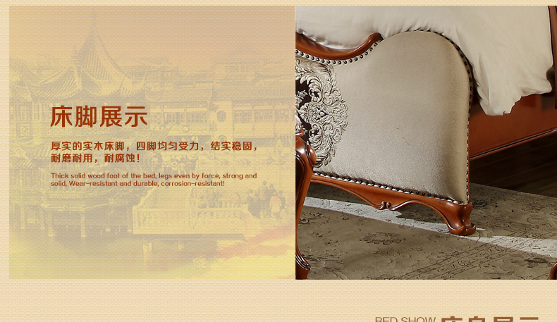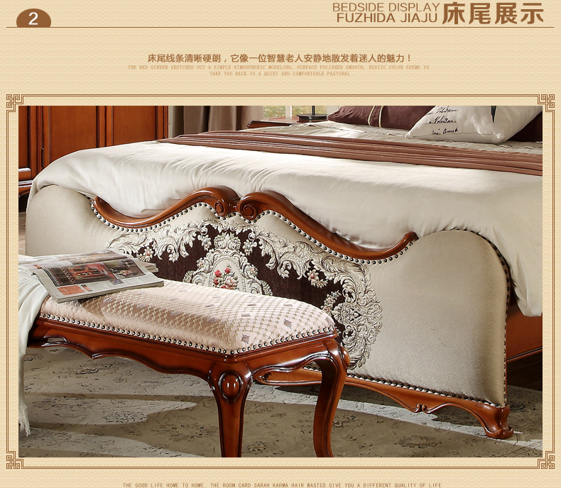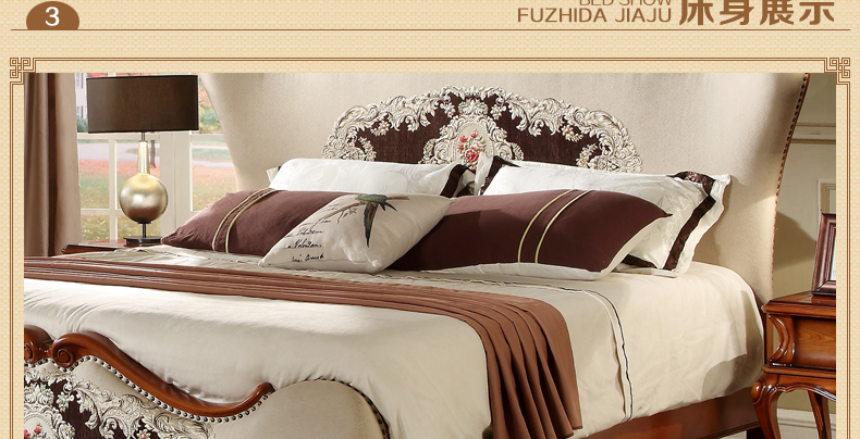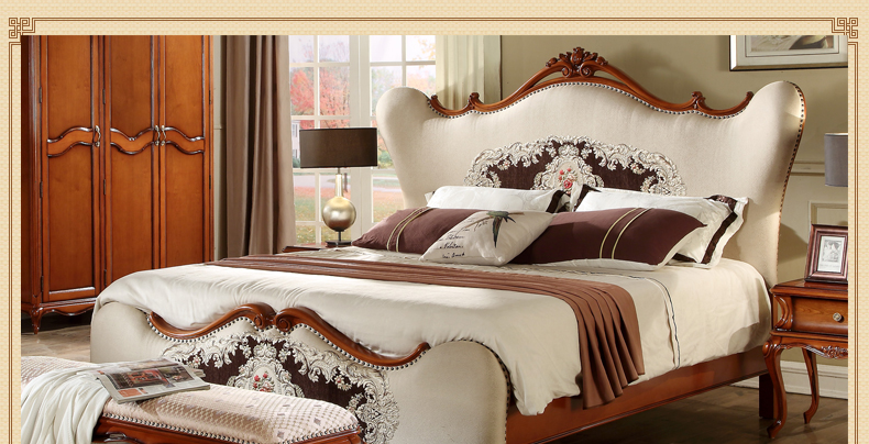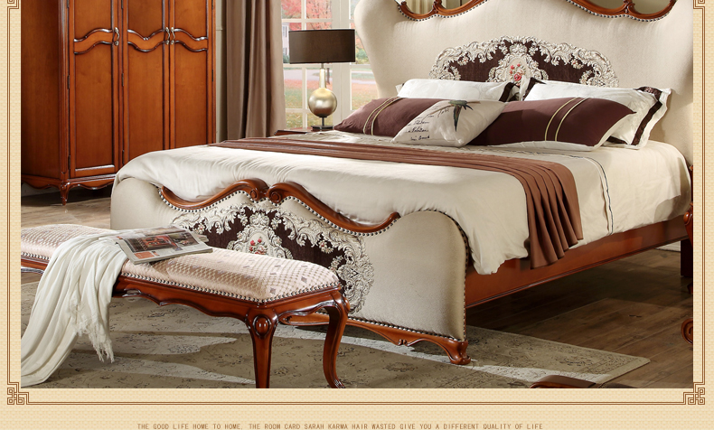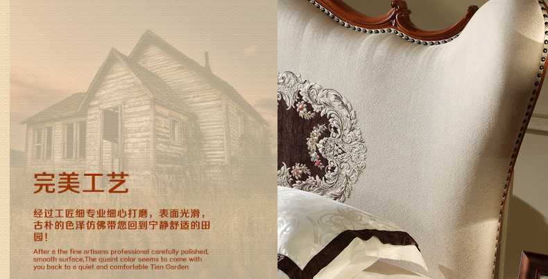 法诗娜美式床橡胶木田园仿古双人床1.8米婚床公主床8A01