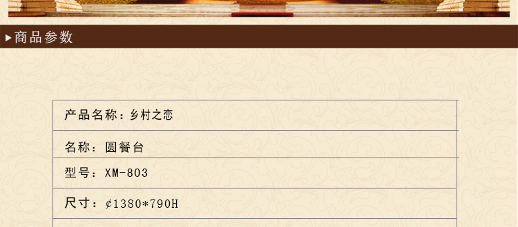 乡村之恋简约美式圆形餐桌现代小户型饭桌圆桌吃饭桌子家具XM-803