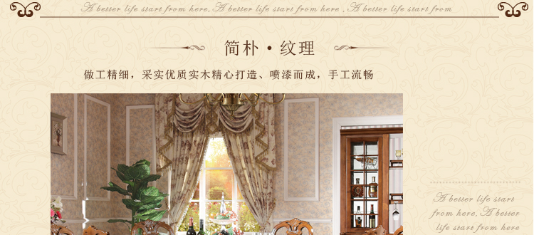 美式实木家具以原始、自然、纯朴的色彩,给人一种贵而不露的感觉作旧,这就和美利坚民族本身民族自豪感造就而成的!所以无论是美式古典家具还是美式田园家具都有一种雍容的华丽。