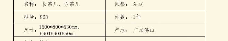 外围尺寸:长茶几1500*800*530mm; 方茶几690*690*650mm