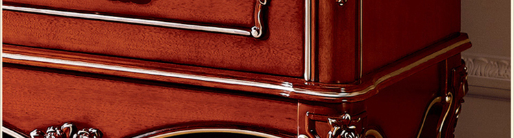 古典法式家具带有浓郁的贵族气息,这类风格的家具,主要采用花样繁多的装饰,作大面积的手工雕刻、金箔贴面、描金涂漆处理,坐卧类家具大量应用面料包覆,华丽的布面与精致的雕刻互相配合。新古典的线条更为明快,主要以嵌花贴皮呈现质感。