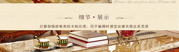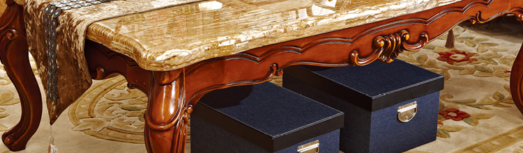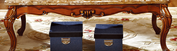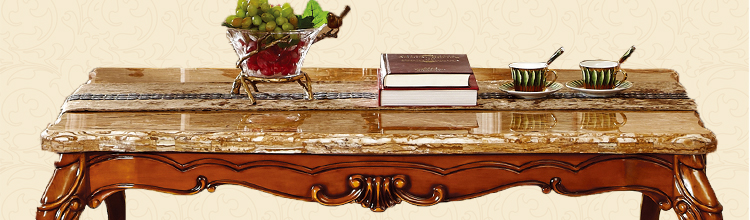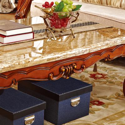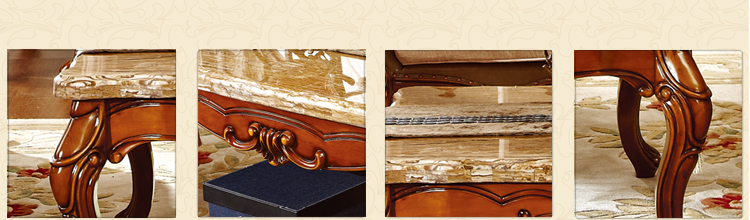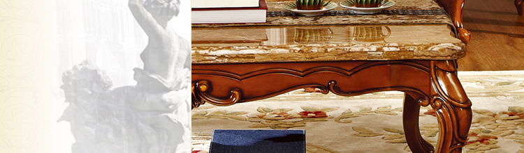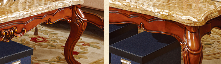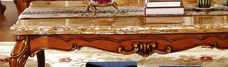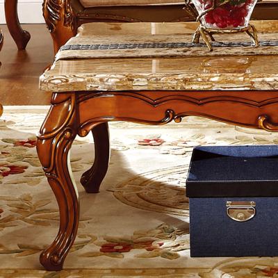 罗曼印象美式大理石茶几客厅深色实木雕花茶几理石面小户型538