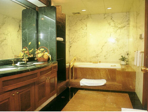 有些朋友在装潢卫生间的时候,喜欢在卫生间里砌一个盆台,盆台高出地面一两个台阶,然后将浴盆嵌在盆台里,说老实话,这样的格局非常漂亮,但最好不要在卧室所套的卫生间里采用这种格局。根据中国传统家相学的原理,卫生间的地面不能高于卧室的地面,尤其是浴盆的位置不能有一种高高在上的感觉,五行学说认为,水是向下流的,属润下格,长期住在被水滋润的卧室里,容易发生内分泌系统的疾病。如果您非常喜欢这样的嵌入式浴盆,可以将它安置在另一间离开卧室较远的卫生间内。