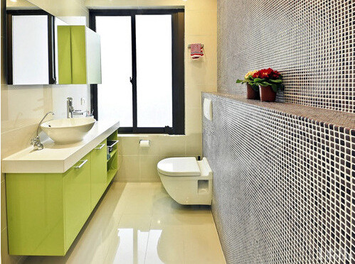 浴室中最理想的色调是粉色系,例如:粉红、淡绿、淡蓝及桃红色等。其次则是奶油色系,或是一些中性色,如:黑色及白色。装饰物及毛巾等配件则可选择强烈的对比色系。