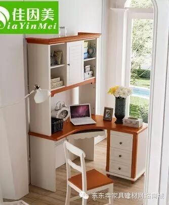 没有足够的房间单独布置一个书房?不要紧!随便在一个角落里摆上转角的书桌就是一个家庭办公室啦!
