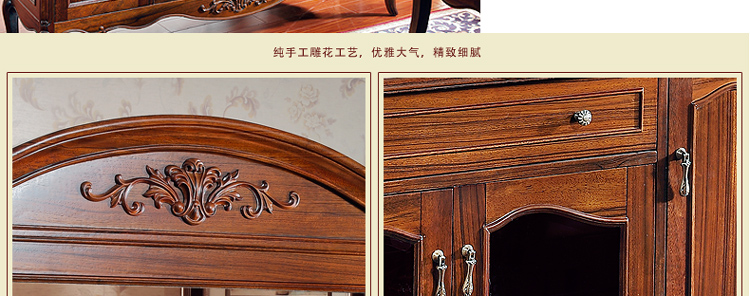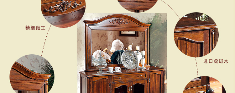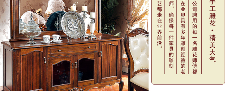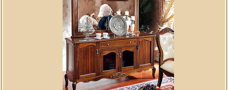 欧式创意大餐边柜,酒柜,上下双层设计,多功能收纳,环保油漆,原始手工工艺结合现代工艺,经典造型,简约之中,彰显沉稳,巨大的储藏功能