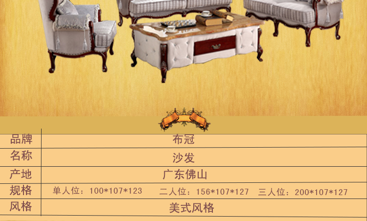 布冠沙发 美式小户型沙发 高档客厅沙发 简美风格沙发 S2029