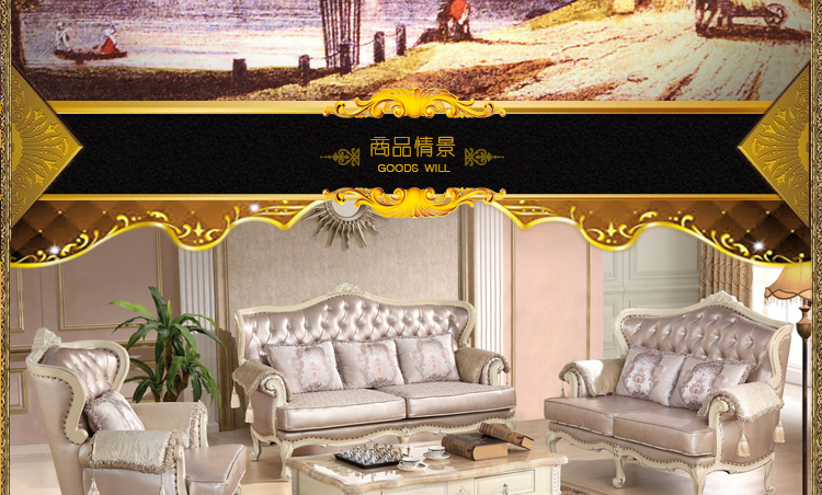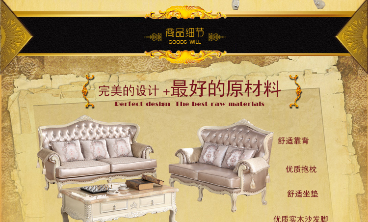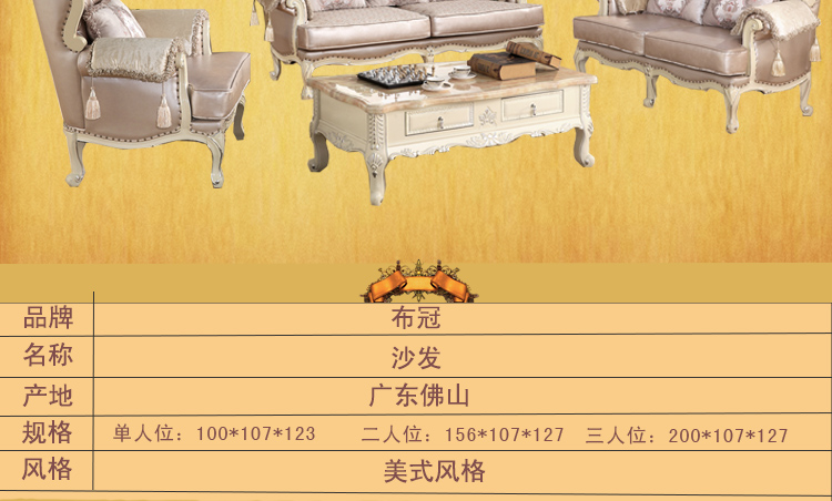 布冠沙发 宜家高档大小户型 简美沙发美式皮艺 沙发组合 S2029-1