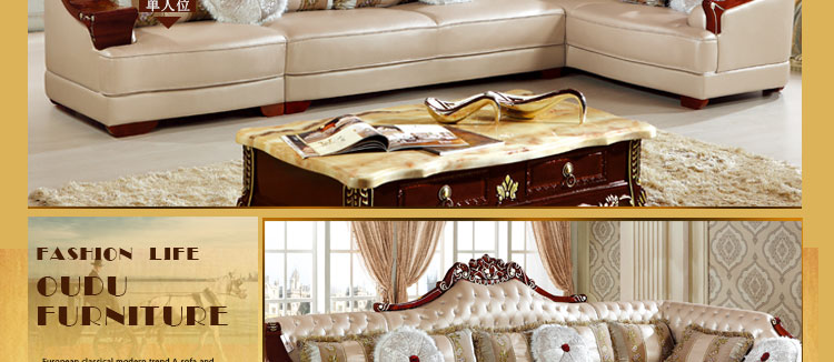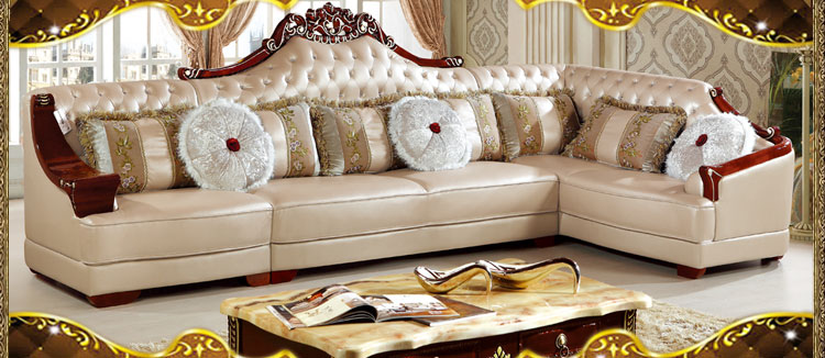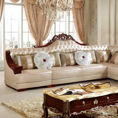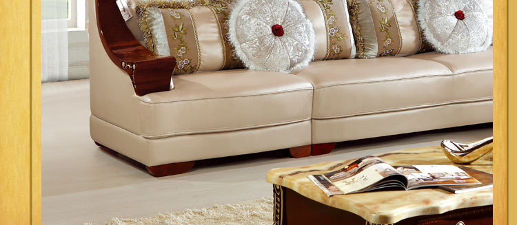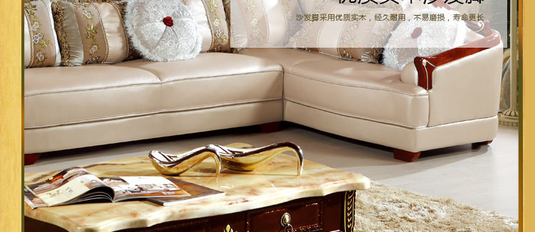 布冠沙发 美式客厅转角皮艺沙发头层牛皮 美式实木真皮沙发组合 B1239