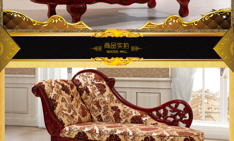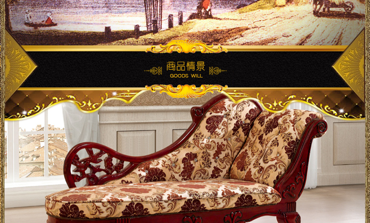 布冠沙发 新古典贵妃躺椅懒人沙发美人榻卧室贵妃椅贵妃椅实木沙发S2013-1