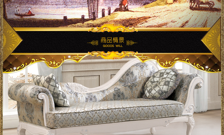 布冠沙发 懒人沙发美人榻卧室贵妃椅贵妃椅实木沙发新古典贵妃躺椅S2012