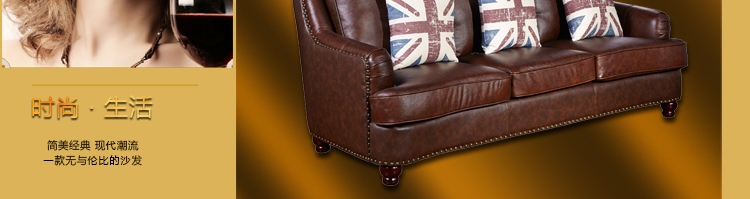艾德森高档奢华简美风格真皮1+2+3沙发组合舒适休闲客厅沙发626A