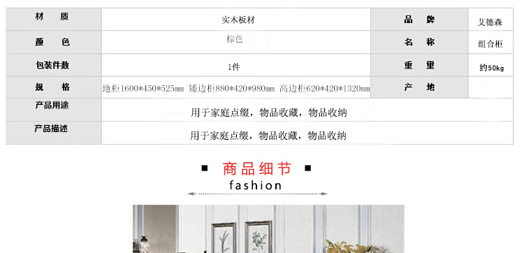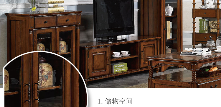 艾德森美式茶几电视柜单双门边柜组合家具电视机柜乡村矮地柜634A