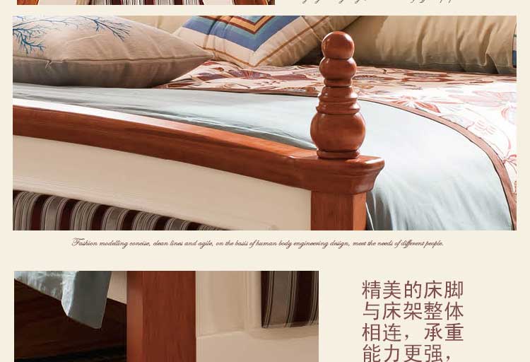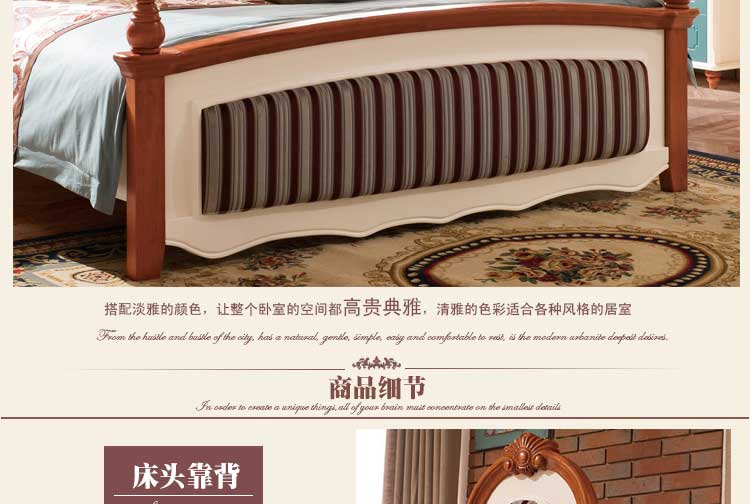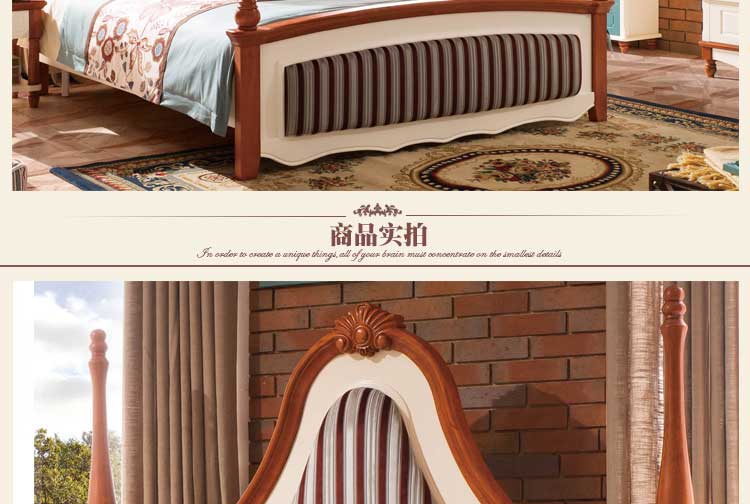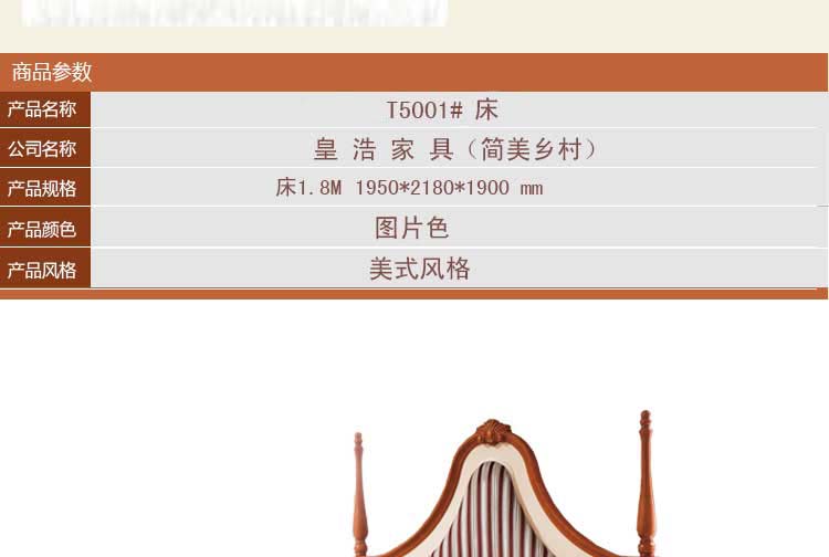 皇浩家具新款 简美乡村风格床 复古双人床1.8大床T5001#