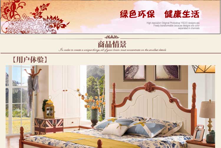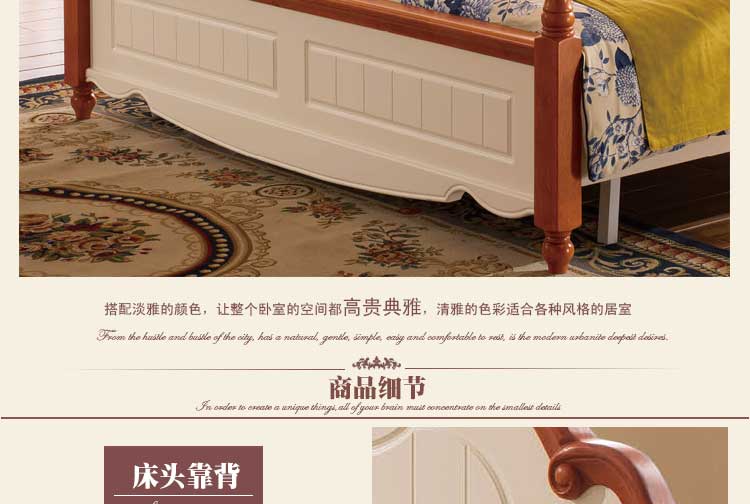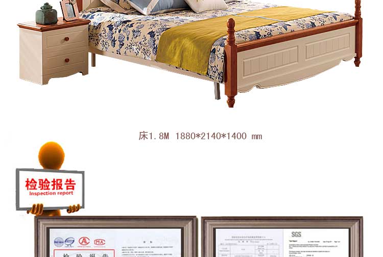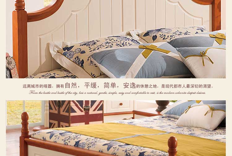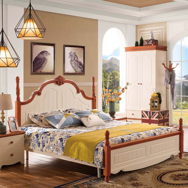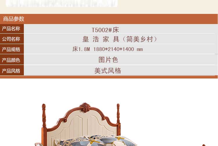 皇浩家具美式乡村板木床1.8米美式田园双人床美式床婚床T5002#