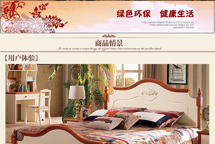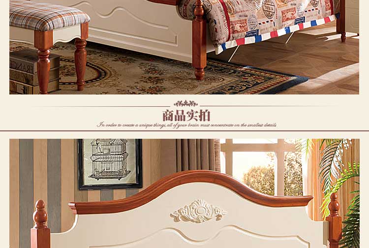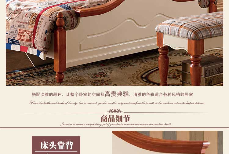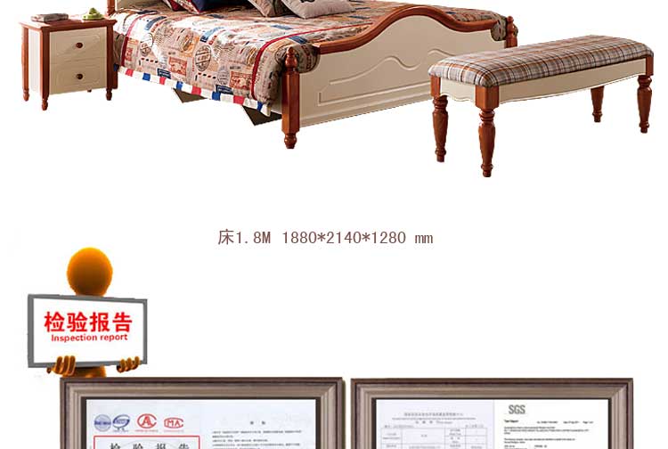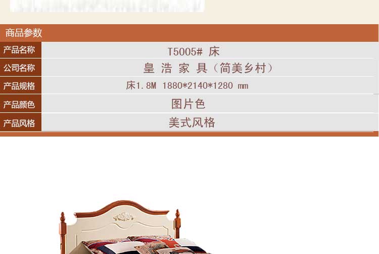 皇浩家具 美式1.8米双人床 婚床 乡村环保卧室家具新品T5005# 床