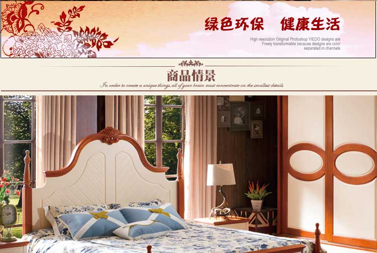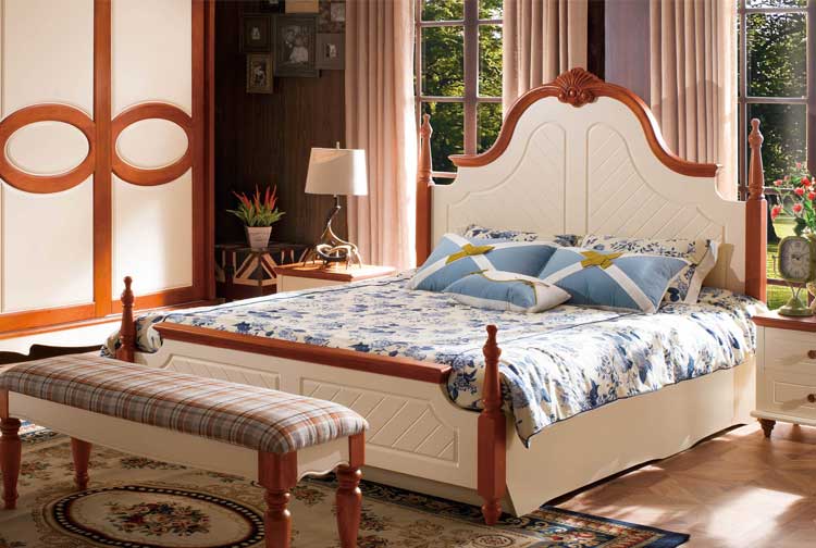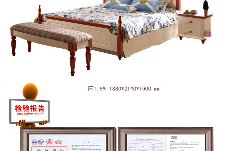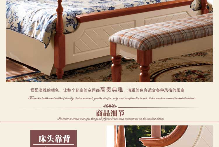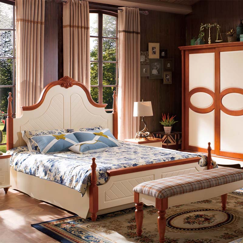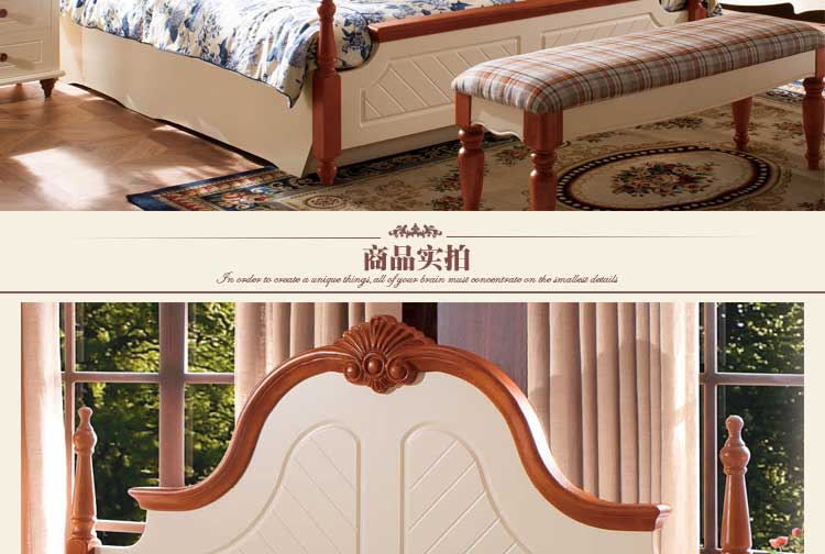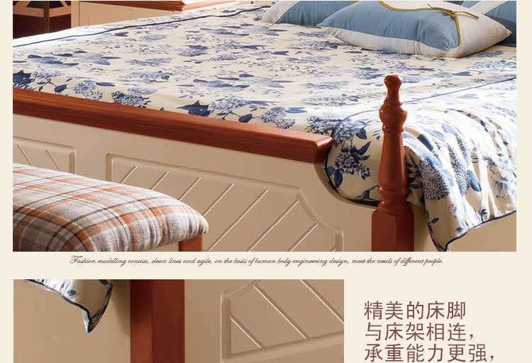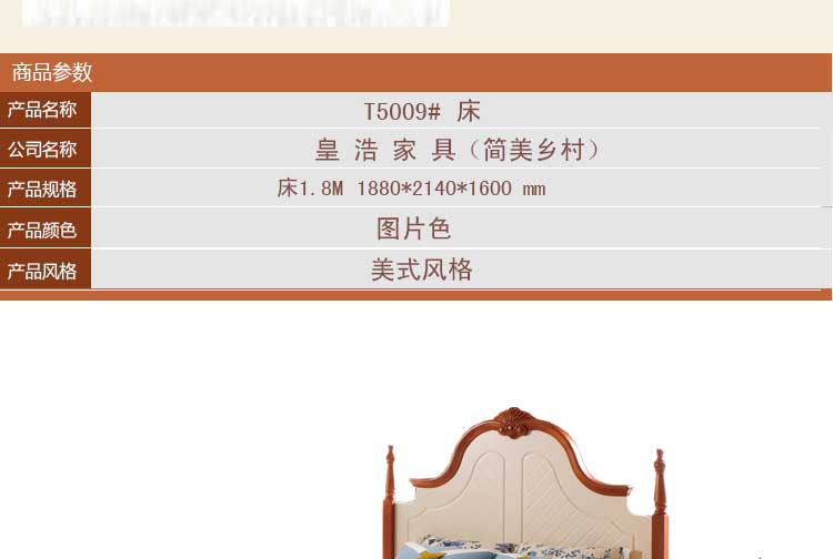 皇浩家具卧室高档美式乡村风格1.8m大床 小美简约婚床T5009#