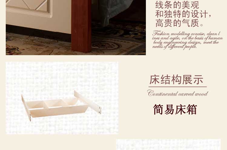 这款床所先在外观上就吸引了我,收到货没有让我失望和描述的一样,最满意的地方是人睡上去包括翻身都没有声音,床板不会响睡觉都踏实。