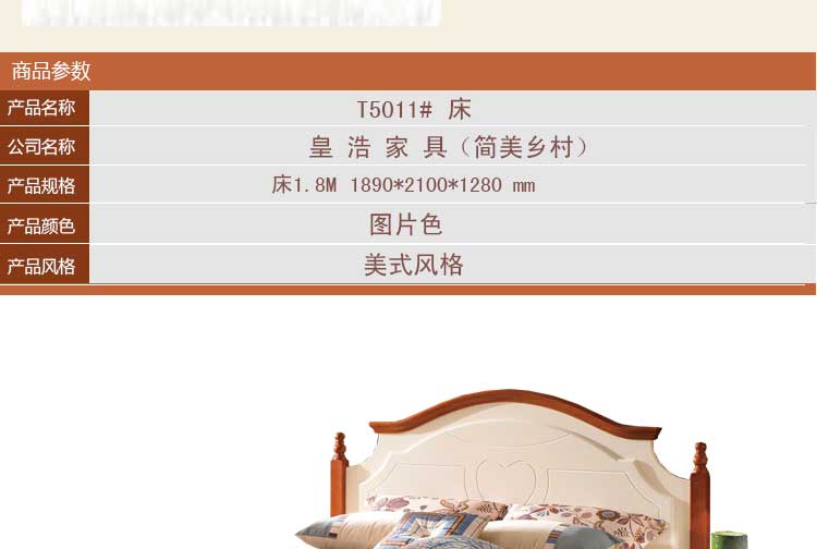 皇浩家具高档奢华卧室美式婚床1.8m美式风格大床T5011#