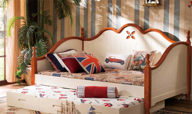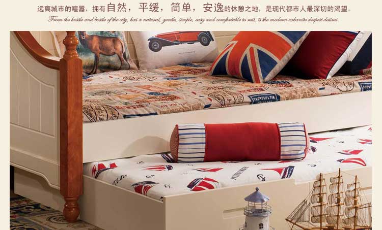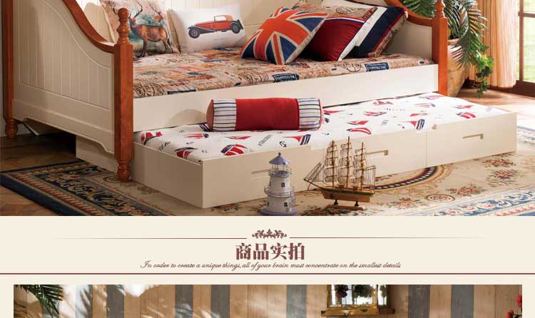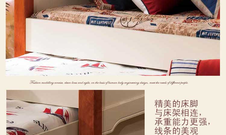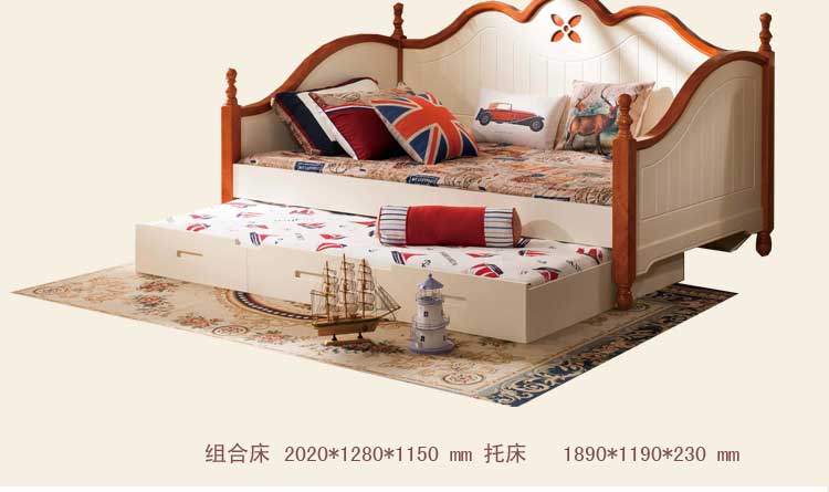 皇浩家具板木儿童床环保床白色单双人床带拖床T2005#组合床