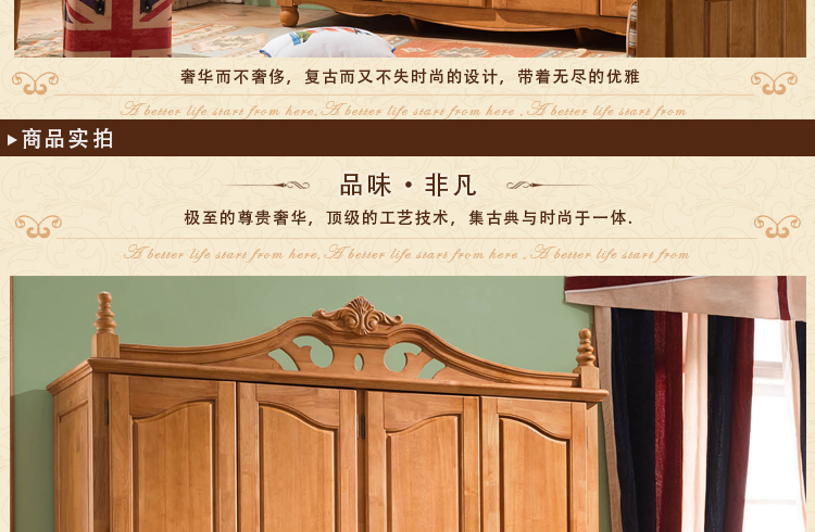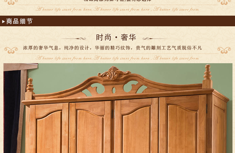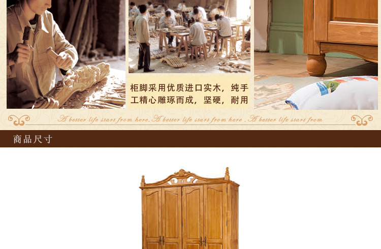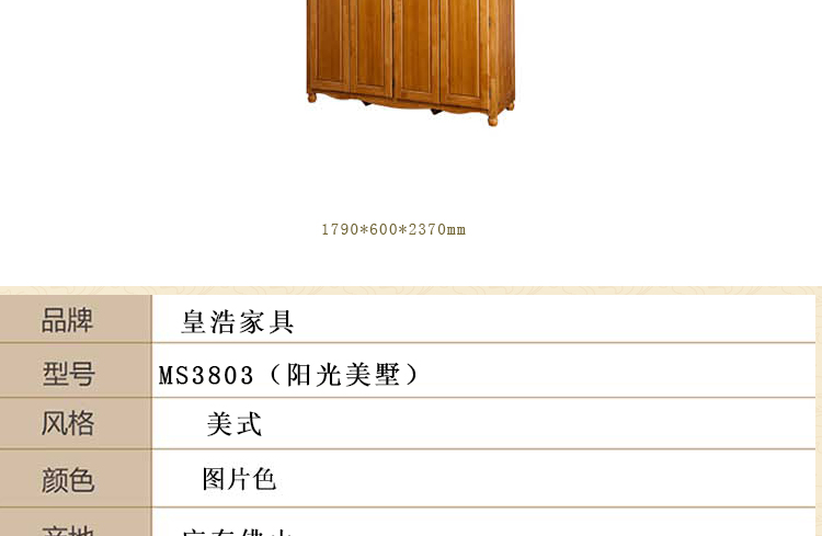 皇浩家具美式衣柜新款卧室大衣柜平开门四门衣柜MS3803