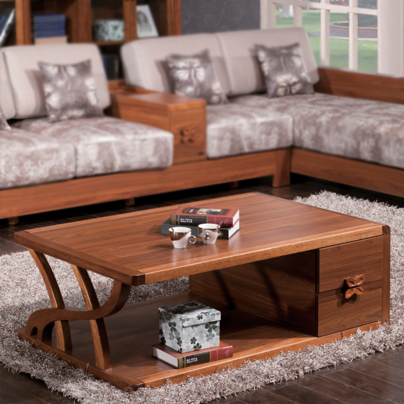 尚信简约中式双层木茶几长方形茶桌圆角矮几家具R-1906