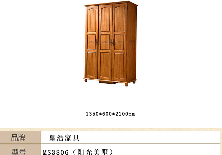 皇浩家具三门大衣柜美式新款衣柜百搭大衣柜板式MS3806