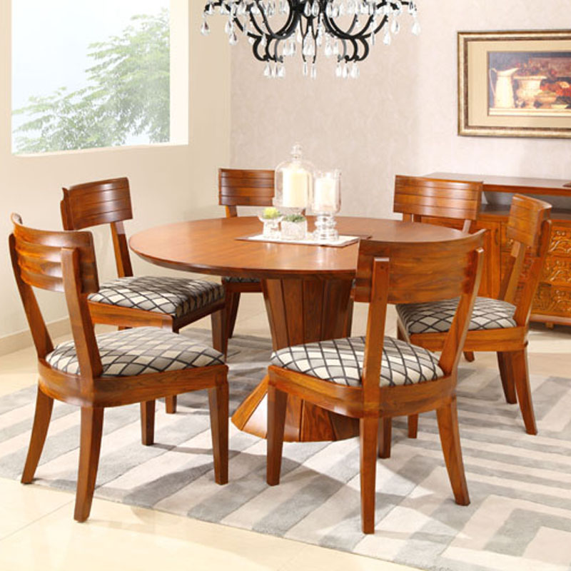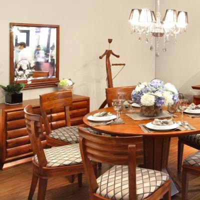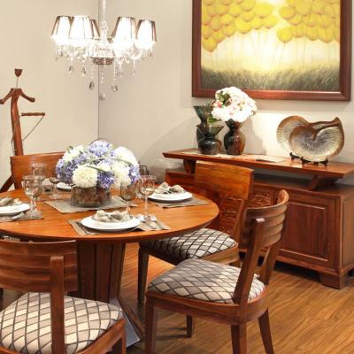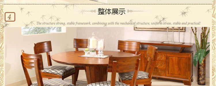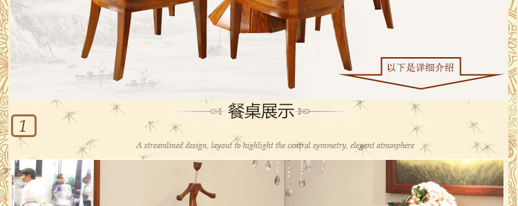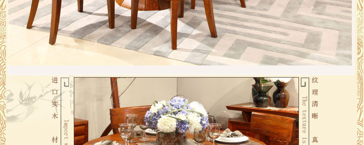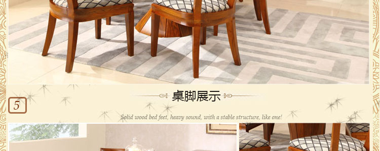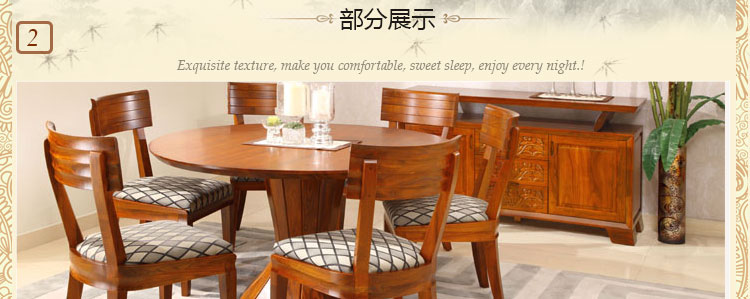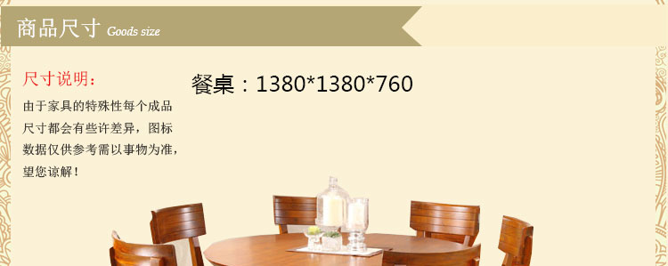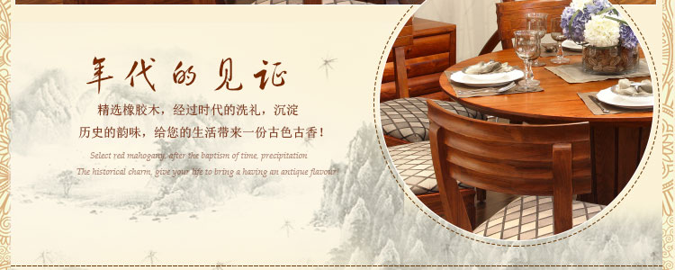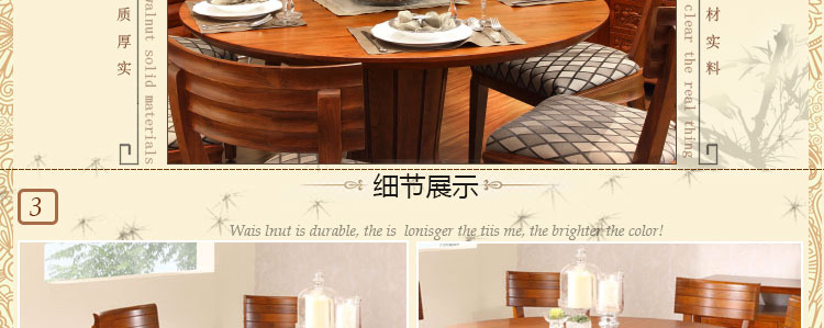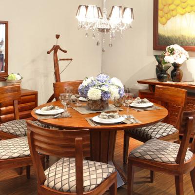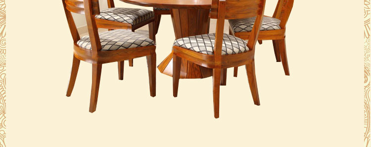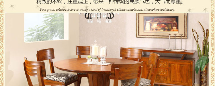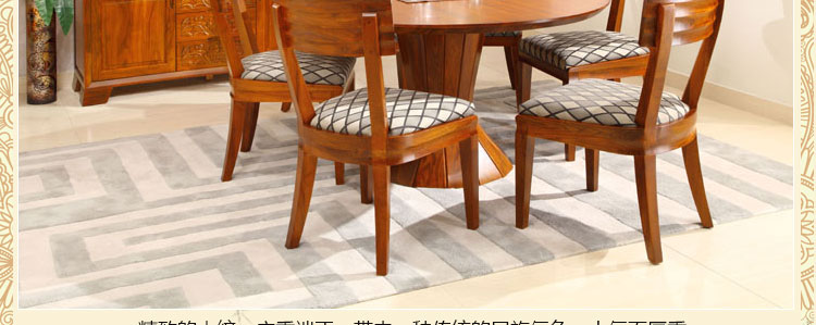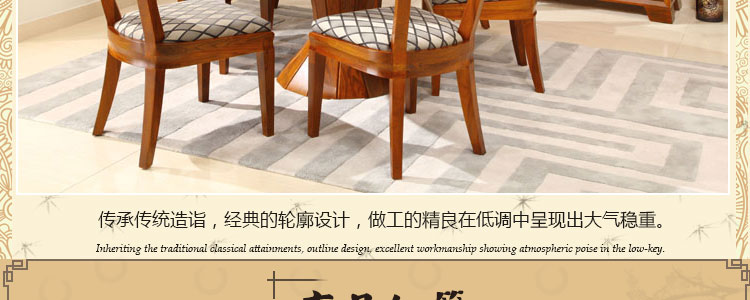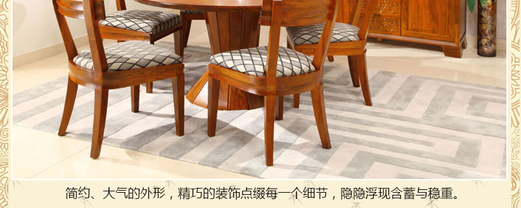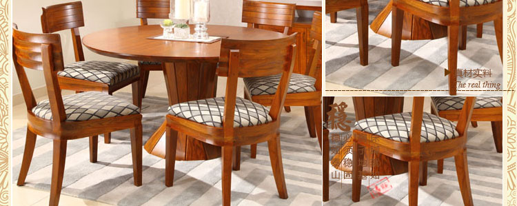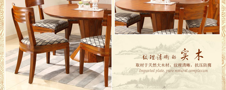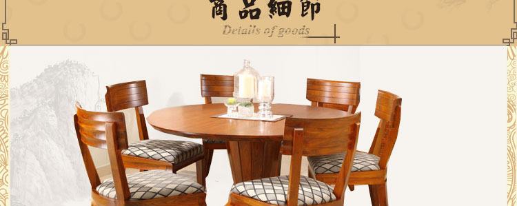 罗肯 新中式全实木餐桌餐椅组合复古典小户型餐桌饭桌圆形餐桌 B808-9