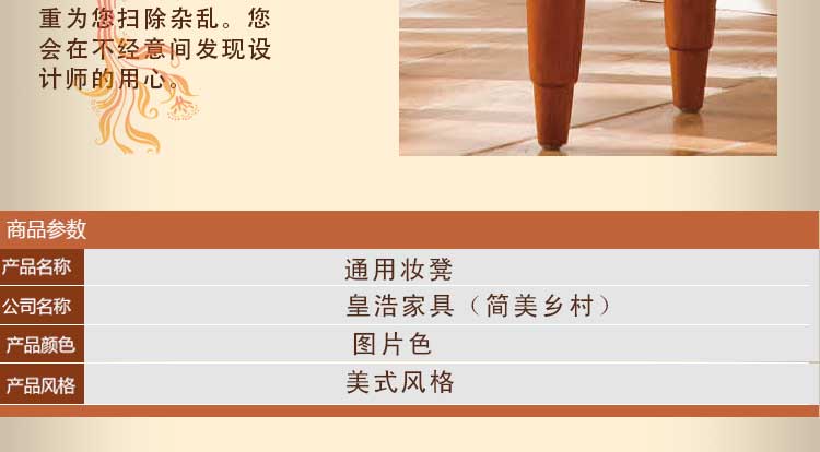 皇浩家具美式乡村软包梳妆凳化妆凳换鞋凳卧室复古凳子通用妆凳