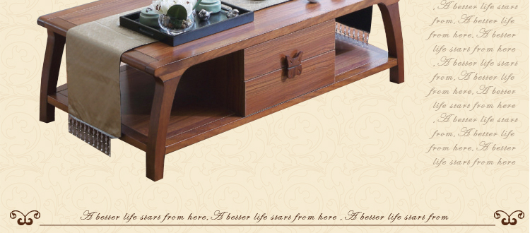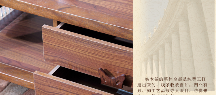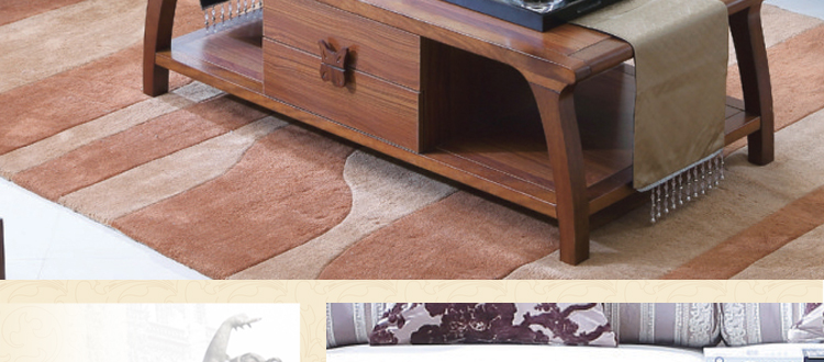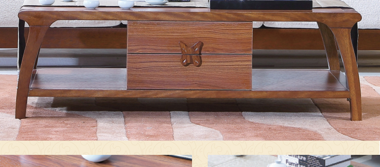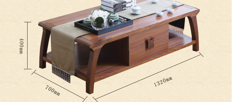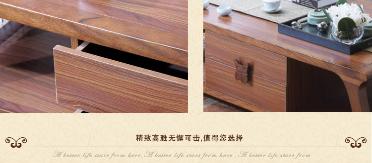 尚信田园实木茶几小户型带抽仿古咖啡桌简约中式角几组合客厅家具R-1909