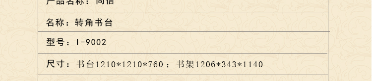 外围尺寸:I-9002转角书台上书架1206*343*1140; I-9002转角书台1210*1210*760。