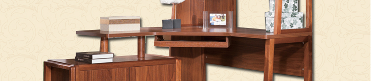 尚信家具新中式风格实木储物收纳书桌书架书房转角书台I-9002