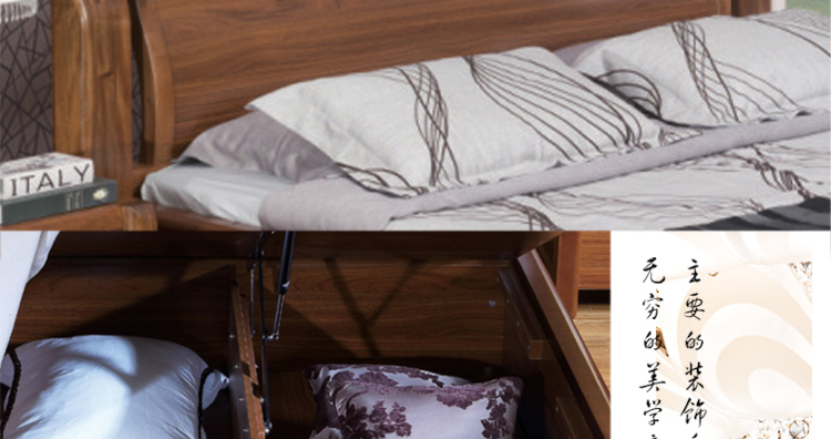 尚信新中式床高档全实木床 简约双人床1.8米储物高箱床 型号:A1002