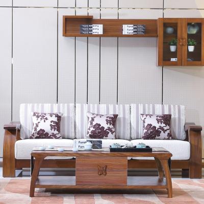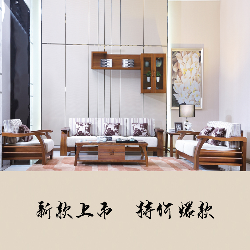 尚信新中式1+2+3客厅摆放实木胡桃木沙发简约田园舒适沙发组合T-2219