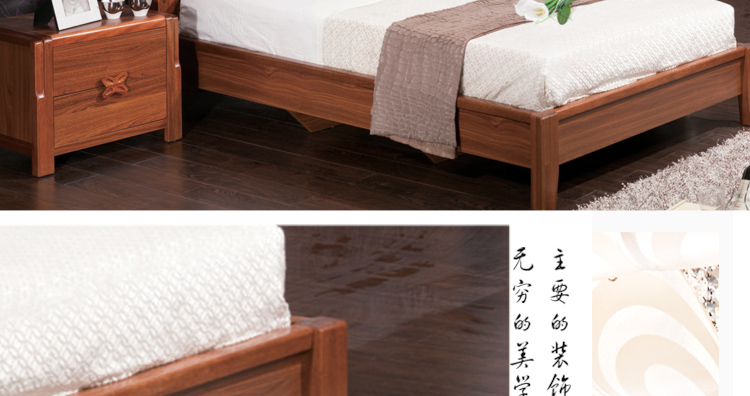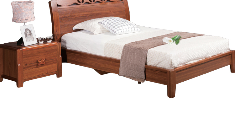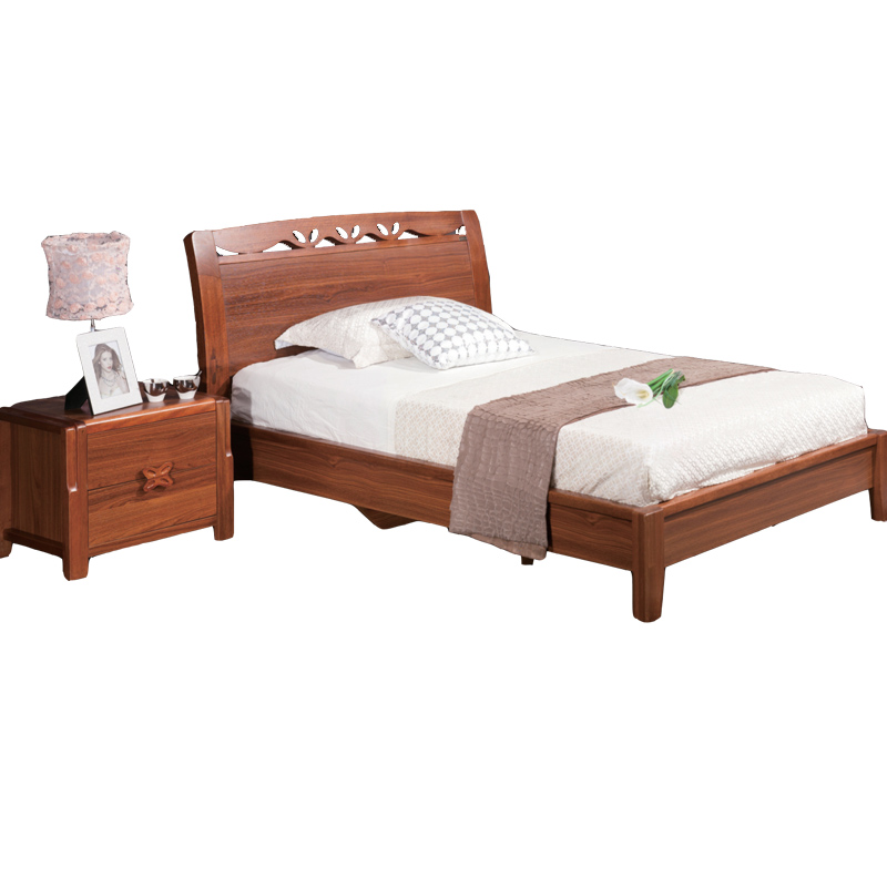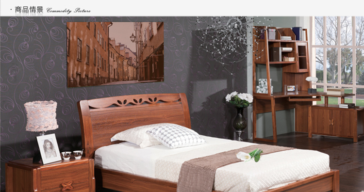 尚信 高档新中式床胡桃木床 精雕细琢 全实木床1.2排骨架 简约儿童床 型号:A1012