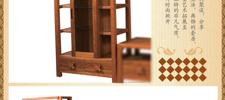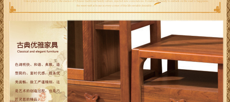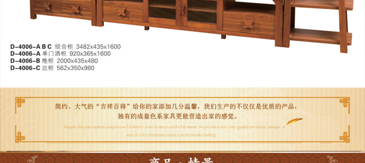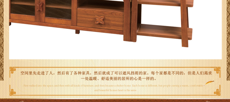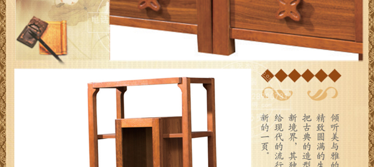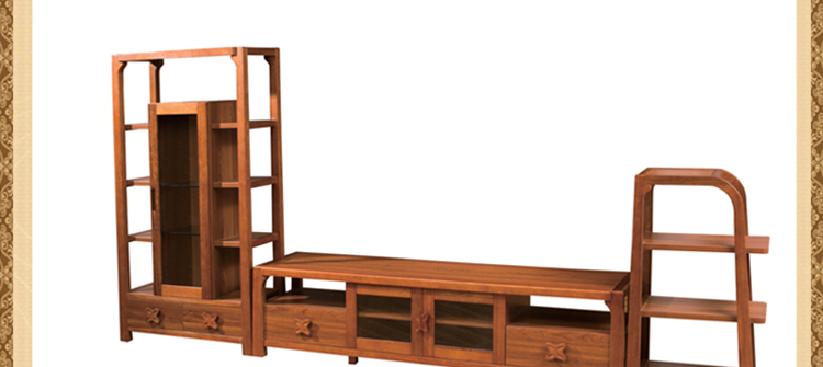 尚信中式实木组合电视柜 原汁原味 胡桃木储物收纳柜 家具 型号:D4006-A-B-C