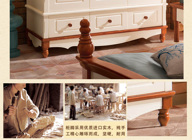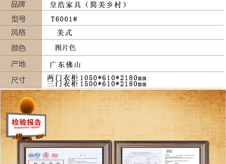 皇浩家具美式简约乡村两门三门衣柜卧室大小户型衣柜T6001#