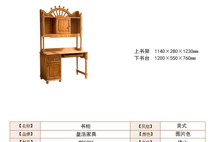皇浩家具美观奢华美式书桌书架新款书房书台组合MS5801