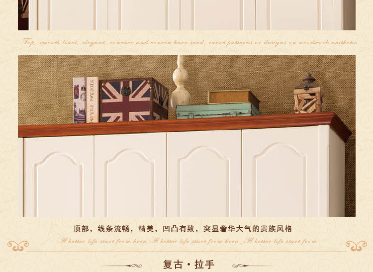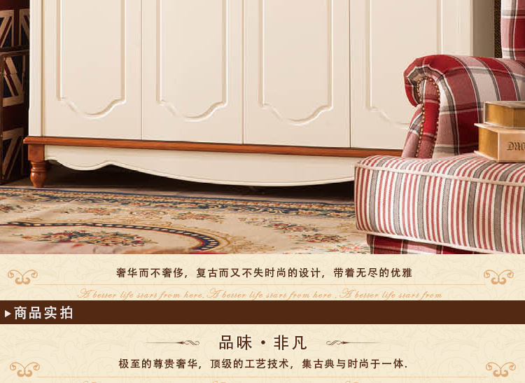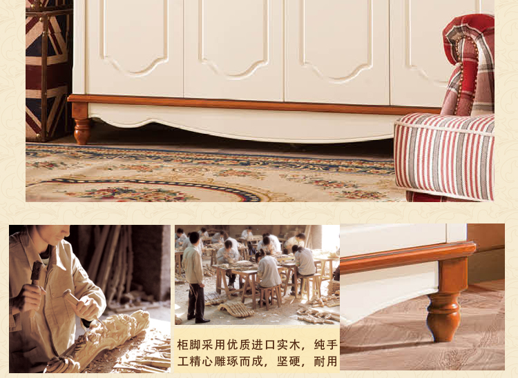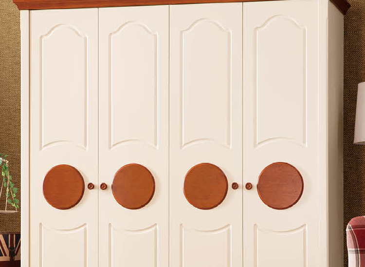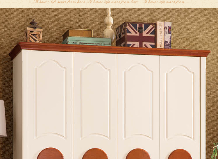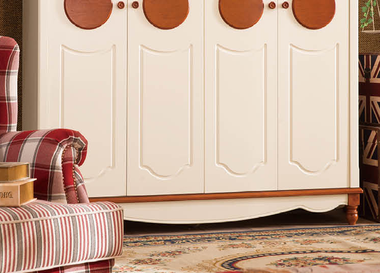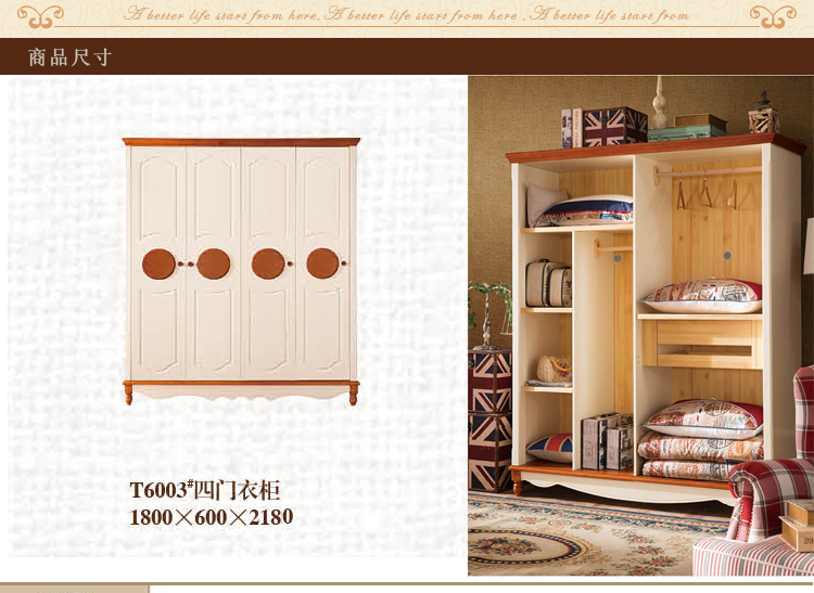 皇浩家具美式乡村整体衣柜四门卧室板木衣柜收纳柜T6003#四门衣柜