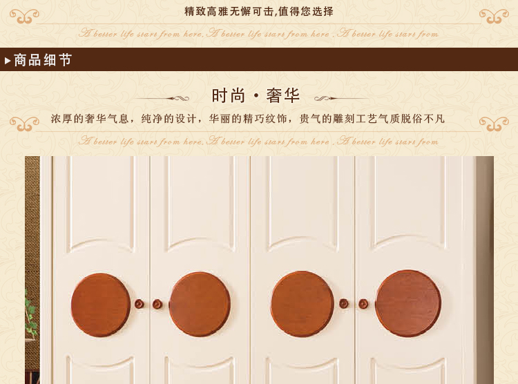 秉承灵感无限的美学创意思想,将艺术和传统文化融入家具设计,每一个细节都表现出家具的品味和自我的风格,折射出家具的文化和强烈个性。朴实简洁不华丽,没有繁多琐碎的花式设计,打造一个时尚完美的家。