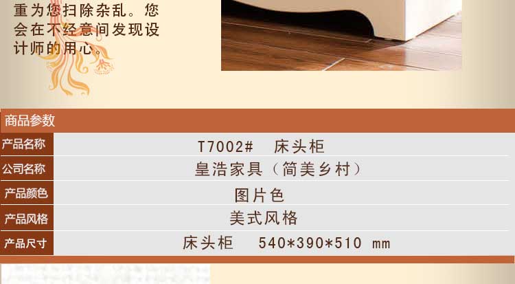 皇浩家具新款美式床头柜卧室收纳柜储物床边柜板木床头柜T7002#床头柜