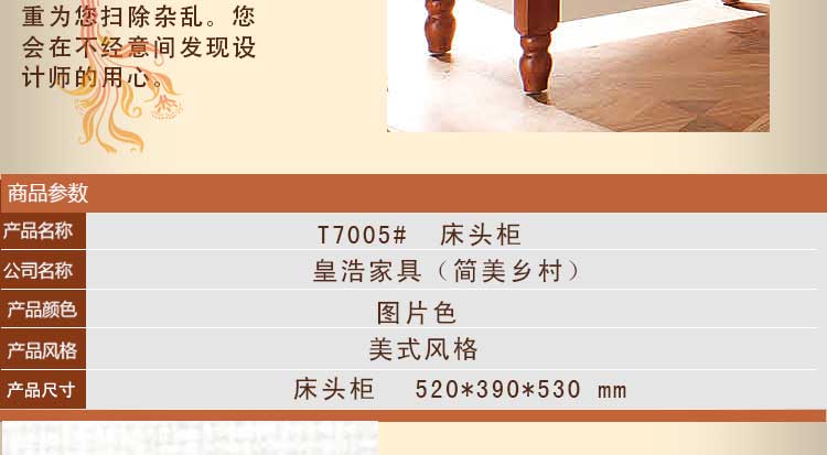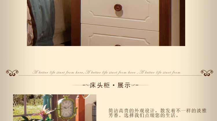 皇浩家具新款美式风格浅色简约时尚典雅储物收纳卧室床头柜T7005#