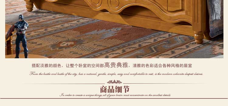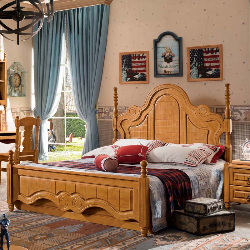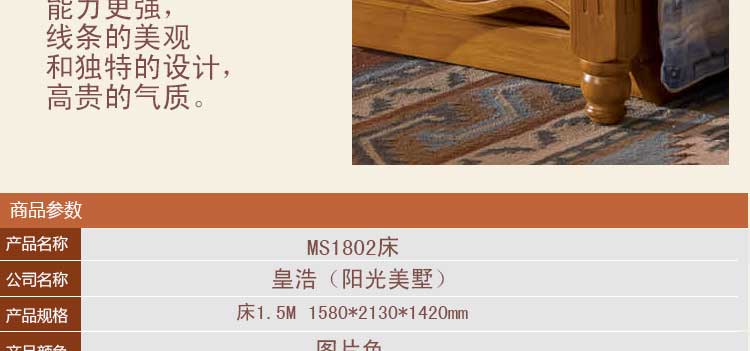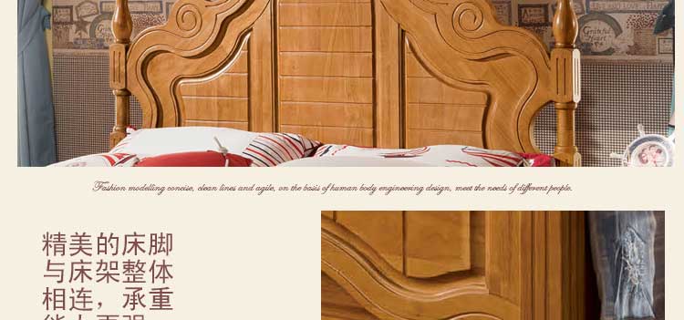 全实木美式床 美式风格床双人床 现代家具皇浩家具阳光美墅MS1802