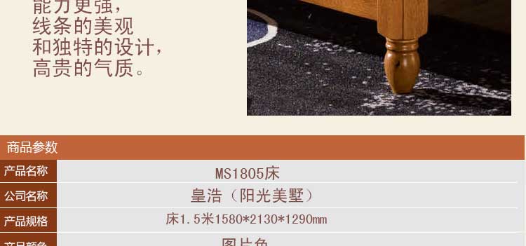 美式床全实木床美式风格家具1.5双人床皇浩家具阳光美墅MS1805